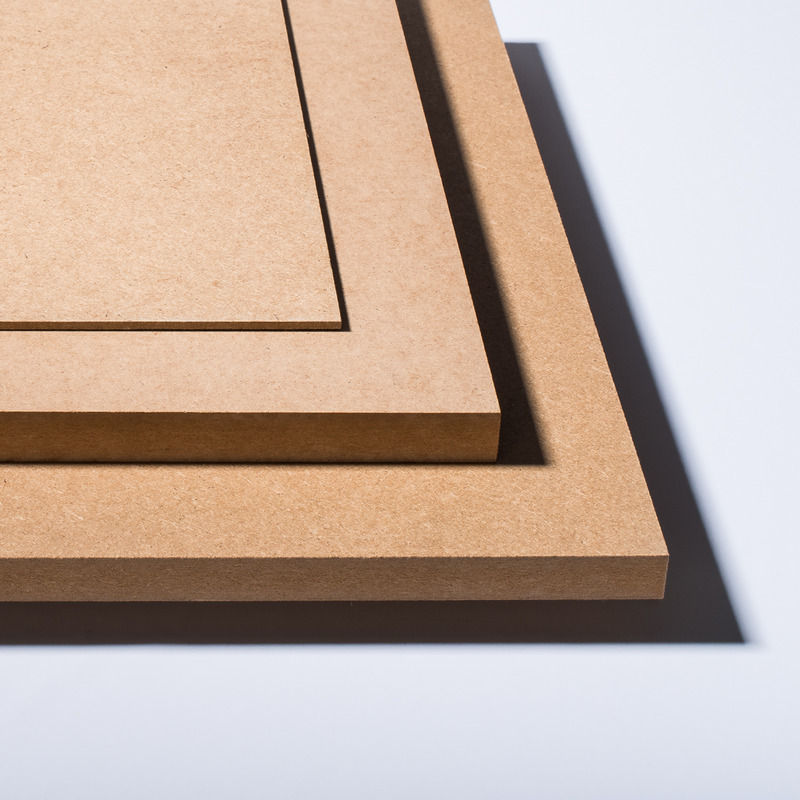 En treaktig plate med middels tetthet, laget av trefibrer bundet sammen med harpiks, presset under høyt trykk og i høy temperatur.